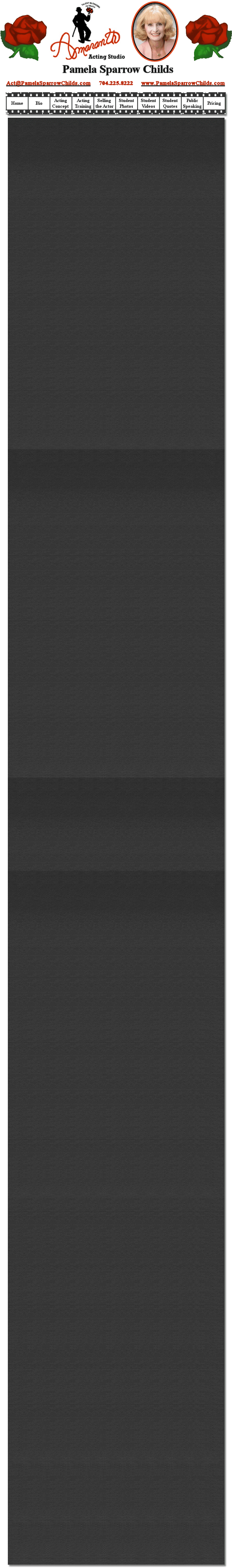 However, it is important for anyone considering the acting profession to understand that learning to act is a process that involves dedication. One has to be willing to invest the time, emotional energy, and money, to seek this goal; knowing, of course, that this business offers no quarantees. This takes fortitude, determination, courage, and a desire that knows no boundaries. This is why few make it to the top. I always tell my students that there are not thousands of actors out of work, as is always reported. All those many bodies claiming to be actors are really not focussed on their careers each and every day. They may get a headshot, take a class here and there, go to a few auditions, but they do not eat, sleep, and